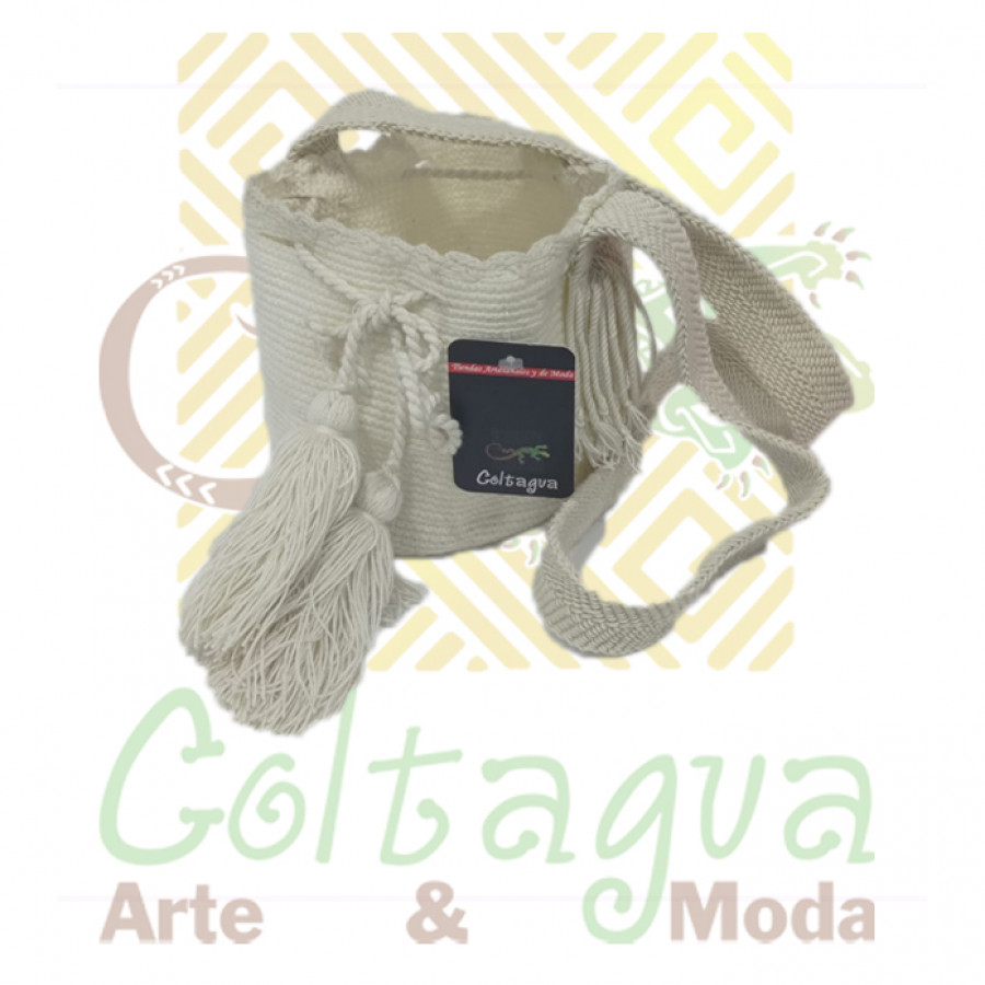 Auténtica mochila Wayúu tejida a mano en un solo tono. Compacta, ligera y perfecta para llevar lo esencial con estilo y tradición. Cada pieza es única y representa el arte ancestral de la cultura Wayúu.